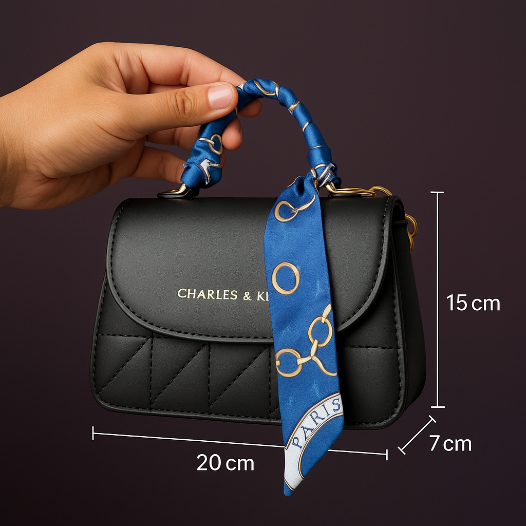 Shop our stylish quilted top-handle handbag in black & red. Dimensions 20×15×7 cm. Intro price ₹1,199 INR. Free global shipping—order today!